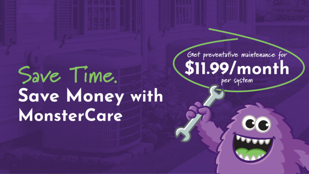 Through state-of-the-art system management and exceptional customer care, we ensure your home stays cozy in winter and refreshingly cool during scorching summers. Our tech-driven MonsterCare maintenance plans provide a unique level of care that no other HVAC company can offer, delivering the exact support your home comfort system demands, precisely when it’s needed.